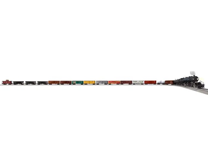 Big power like this deserves a big train! The latest in Lionel's "Super Sets" gives you a great start with 15 cars to run behind your Triplex. The set includes Triplex #5016 in her "as delivered" look with a Russia Iron boiler and all the trim. The train is made up of 15 scale freight cars including a VISION double-deck stock car and VISION caboose to add even more sounds and action. Also included are many uniquely decorated freight cars available only through this set including a mix of prototypical Erie cars and some fantasy cars that any Erie fan will appreciate like the "Still Well" tank car, "Dun More" boxcar, "Starrucca Beer" reefer and even "Hoboken Bindle's" boxcar - complete with "Hobo Ken" riding along! At over 15 feet in length, this set will have your head and your drivers spinning! SET INCLUDES: Vision Triplex locomotive and tender Vision Stock Car 8k Gallon Tank Car Two Double Sheath Boxcars Single Sheath Boxcar Four Woodside Reefers Hobo Boxcar Steel Side Boxcar Three 2-Bay Hoppers Vision Woodside Caboose LOCOMOTIVE FEATURES: NEW Wheel Slip! - Tender wheels slip on user command, LVC, 4-Digit Addressing and more!